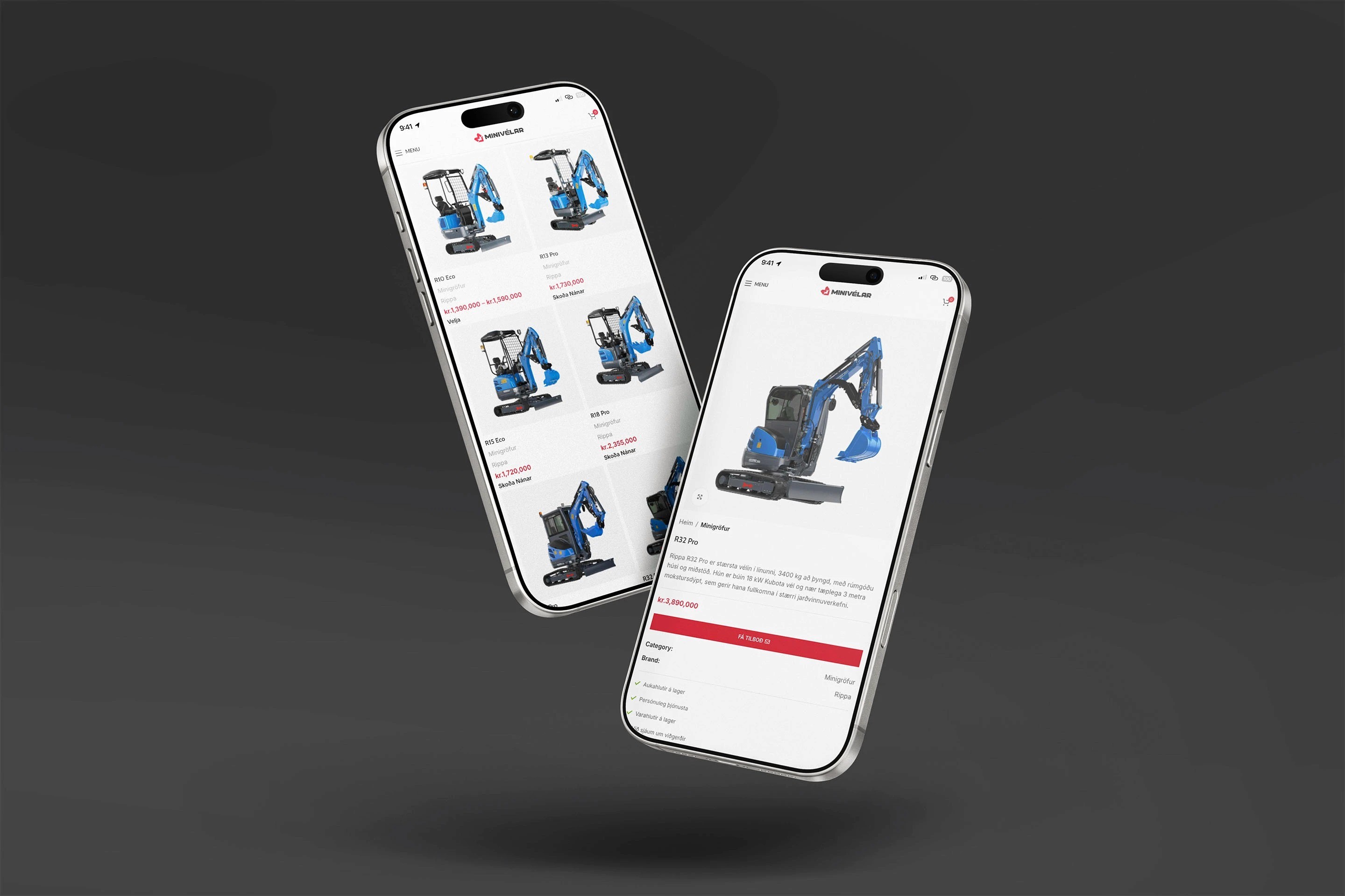 Verkefnið fólst í hönnun og uppsetningu á nútímalegu brandi og vefverslun fyrir Minivélar, þar sem áhersla var lögð á skýrt og aðgengilegt notendaviðmót. Hönnunin einkennist af sterku „industrial“ yfirbragði sem tónar vel við vöruúrvalið og dregur fram gæði vélanna. Uppsetningin tryggir einfalt leiðarkerfi og þægilega upplifun, þar sem auðvelt er að bera saman tæknilega eiginleika. Heildarútlitið endurspeglar kraft og áreiðanleika með markvissri notkun á litapallettu og leturgerðum.