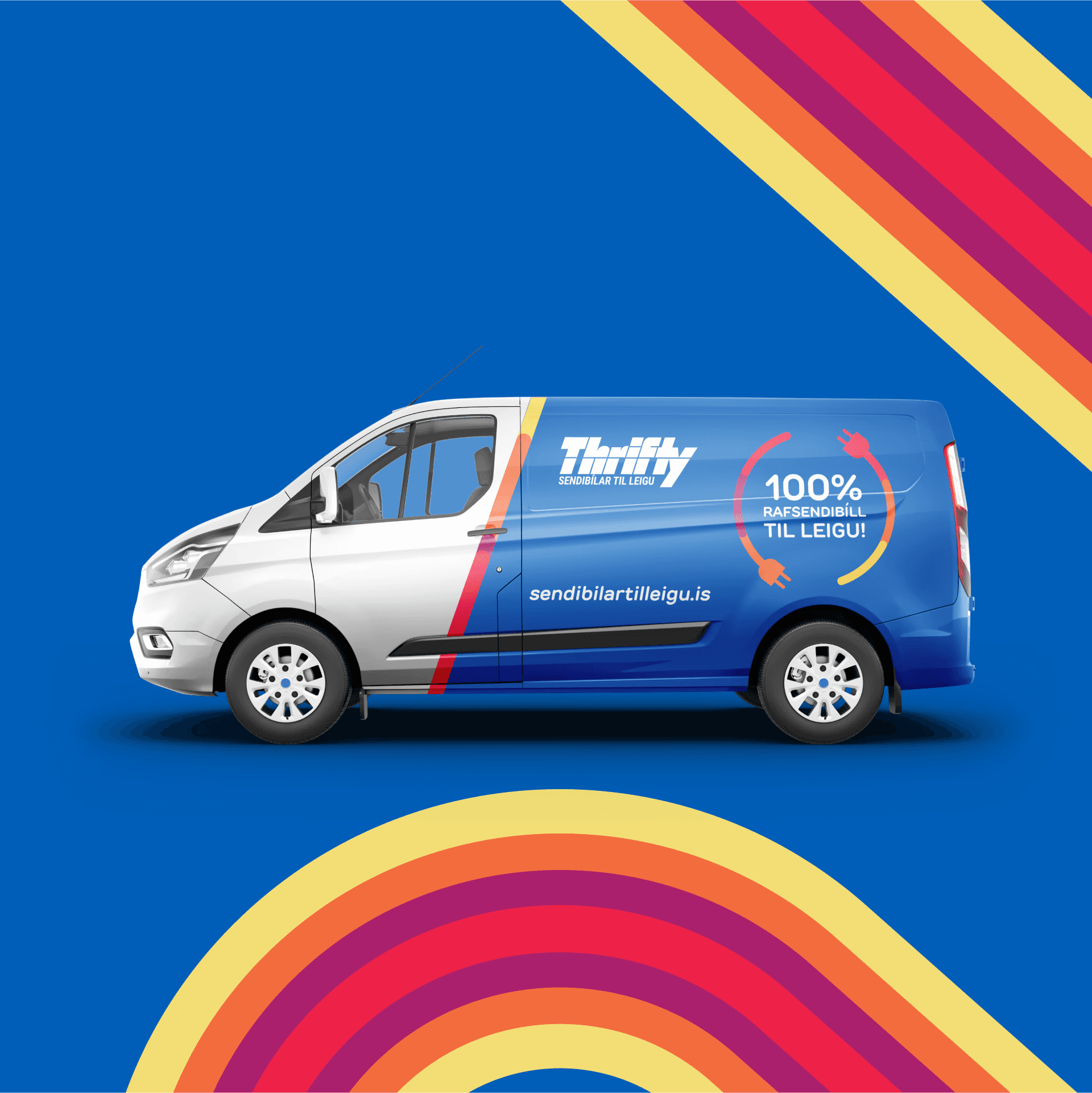 Thrifty Bílaleiga fól okkur að sjá um útfærslu á merkingum fyrir sendibíla. Verkefnið fólst í að beita núverandi hönnunarkerfi Thrifty á raunverulega bíla, þannig að útlitið væri í samræmi við alþjóðlegt vörumerki en jafnframt hentaði íslenskum aðstæðum. Við lögðum áherslu á skýra framsetningu, læsileika og sterka vörumerkjaviðveru. Útkoman voru snyrtilegar og faglegar merkingar sem styrkja sýnileika Thrifty á markaðnum.