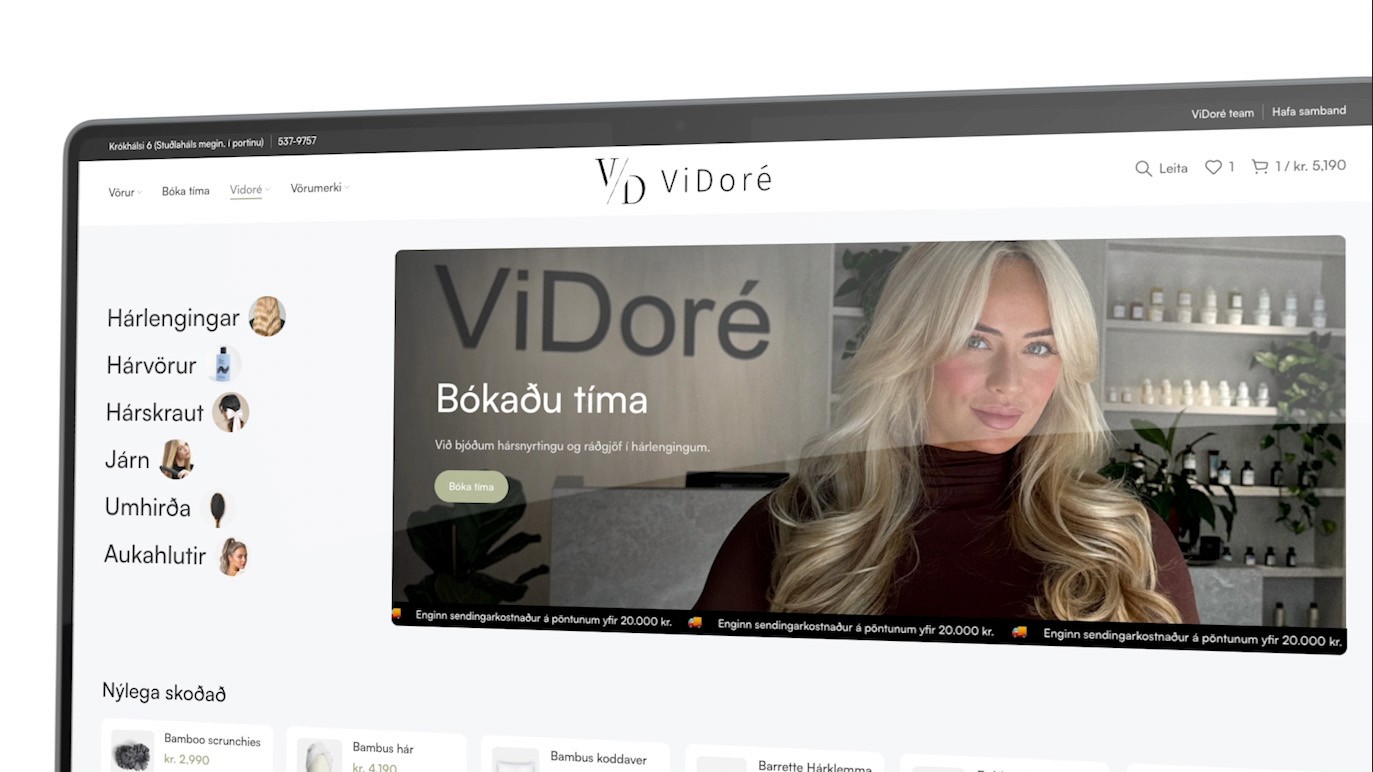 Við hönnuðum og settum upp sérsniðna vefverslun fyrir ViDoré, leiðandi sérfræðinga í hárlengingum á Íslandi. Verkefnið fólst í að skapa stafræna upplifun sem endurspeglar gæði og þjónustu stofunnar, sem er meðal annars dreifingaraðili fyrir hið eftirsótta vörumerki Rapunzel of Sweden.